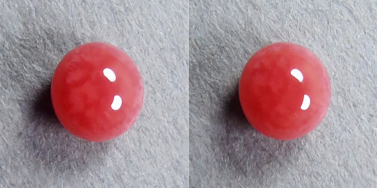 赤に近い濃いピンクの地色を持つ、品質の良いコンクパールです。